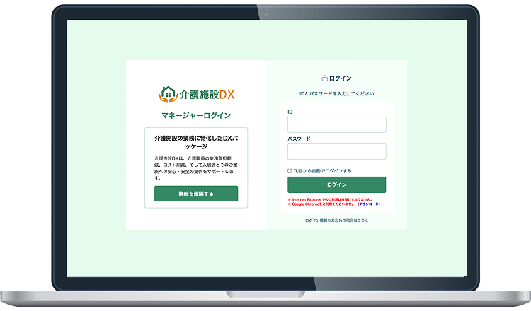 ・介護施設で日常的に業務システムを利用する職員(ITに不慣れなスタッフを含む)