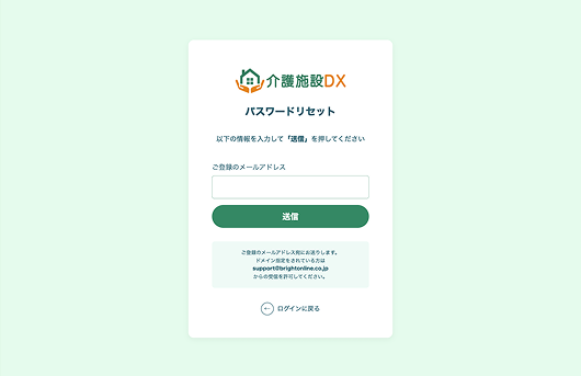 介護施設向けDXプロダクトの管理画面における認証フロー(マネージャーログイン/AIアシスタントログイン/パスワードリセット)のUI設計・実装を担当。